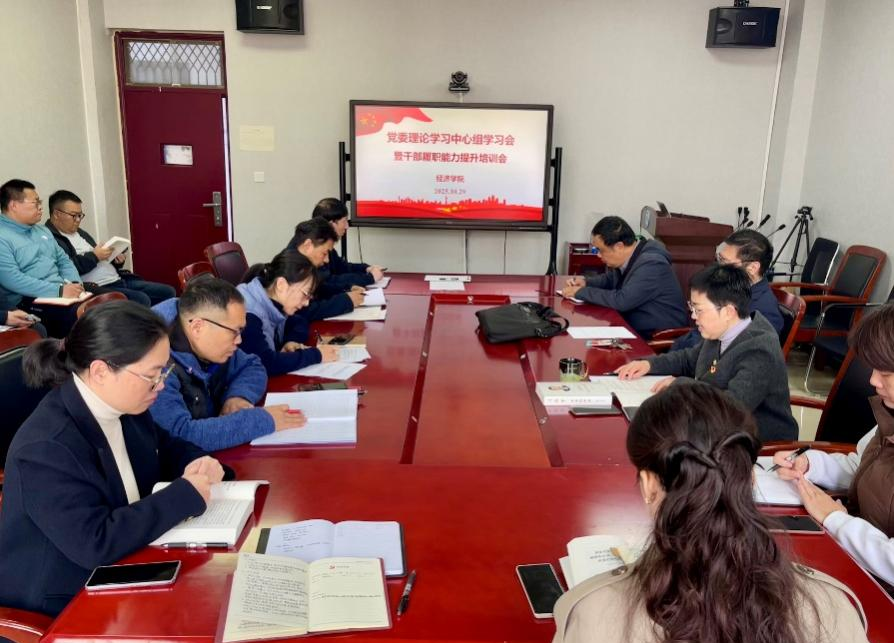 为深入学习贯彻习近平新时代中国特色社会主义思想,扎实推进“强三风、促发展”专项巡察整改工作,10月29日,经济学院召开党委理论学习中心组学习暨干部履职能力提升培训会议。学院全体科级以上干部、专业系主任及党支部书记参加会议。会议由学院党委书记贺琼主持。