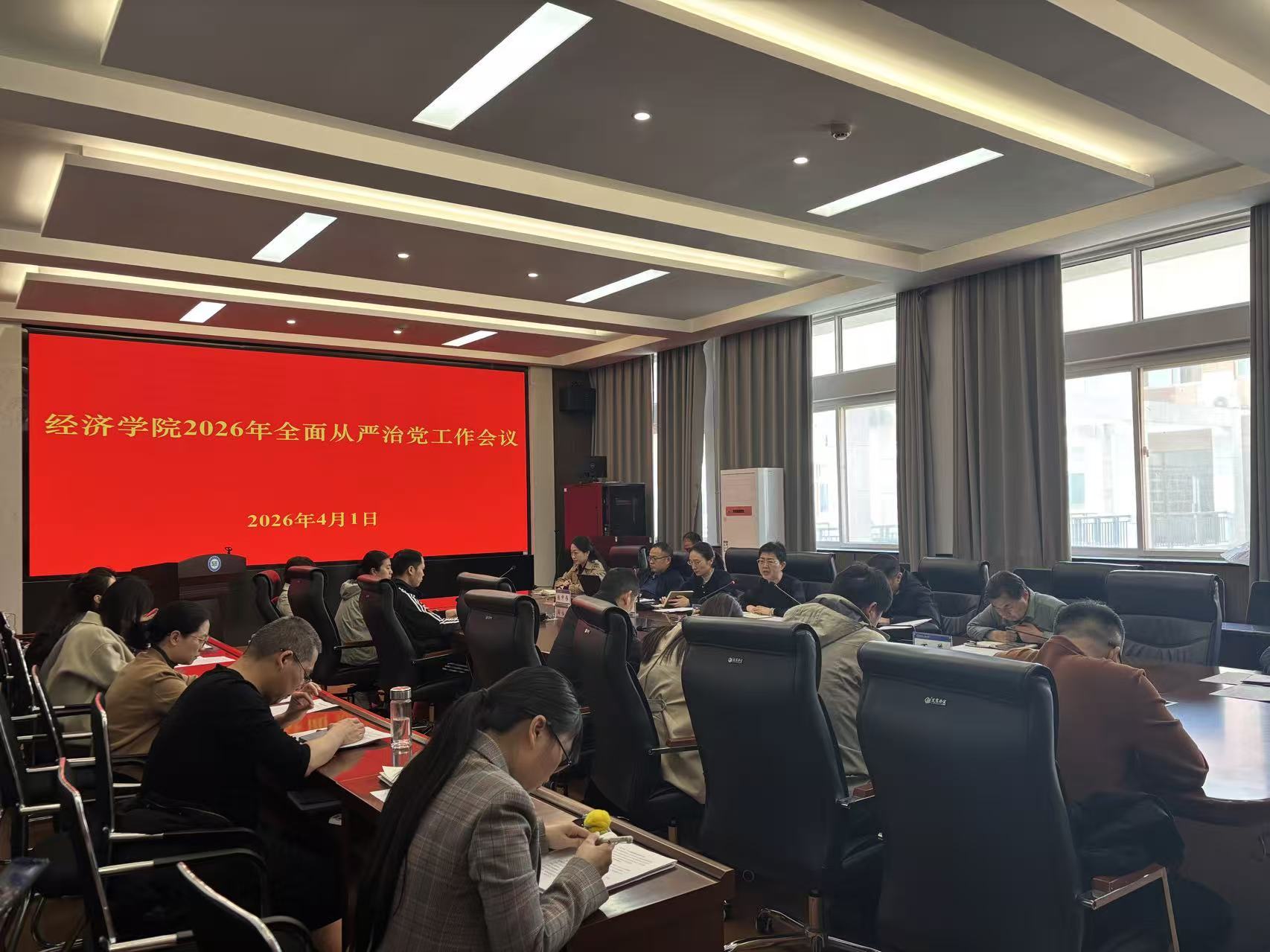 4月1日下午,经济学院在05A407召开2026年全面从严治党工作会议。学院领导班子成员、科级干部、教研室主任、党支部书记参加会议,会议由学院党委副书记拜婷主持。