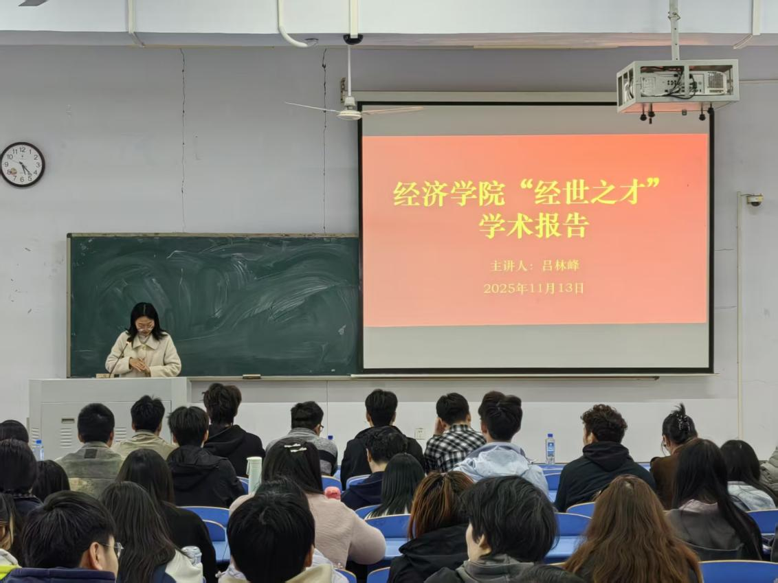 2025年11月13日下午,经济学院第五届“经世之才”文化节在05A301教室举办“经世智汇”大讲堂,特邀北京智源创芯硬科技孵化器创业导师、郑州航院经济学院金融专业硕士生导师、嘉兴小牛私募证券投资基金投研总监、基金经理吕林峰担任主讲嘉宾,讲授“基于‘十五五’规划看未来资本市场投资方向及策略——大学生金融素养及职业能力提升指导”专题学术报告。报告由学院研究生辅导员郑贺允主持,研究生和本科生积极参与,气氛热烈。