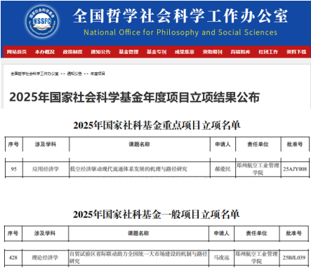 两位教授的国家级项目成功立项,成为经济学院教师坚持精深特色研究的榜样,必将对学院持续获得更多高水平科研成果提供强大动力,同时为服务于我校高水平航空航天大学建设作出更多贡献。(图文/万举 审校/贺琼)