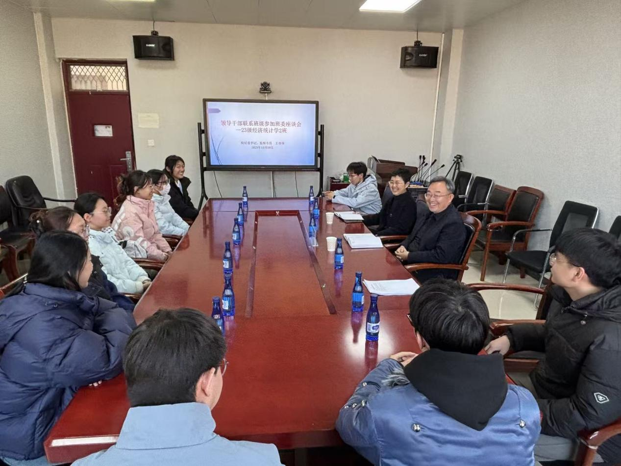 2025年11月19日,校纪委书记、监察专员王继锋深入我院2023级经济统计学2班开展联系交流活动。经济学院党委书记贺琼、辅导员李百傲及该班学生代表一同参加了活动。