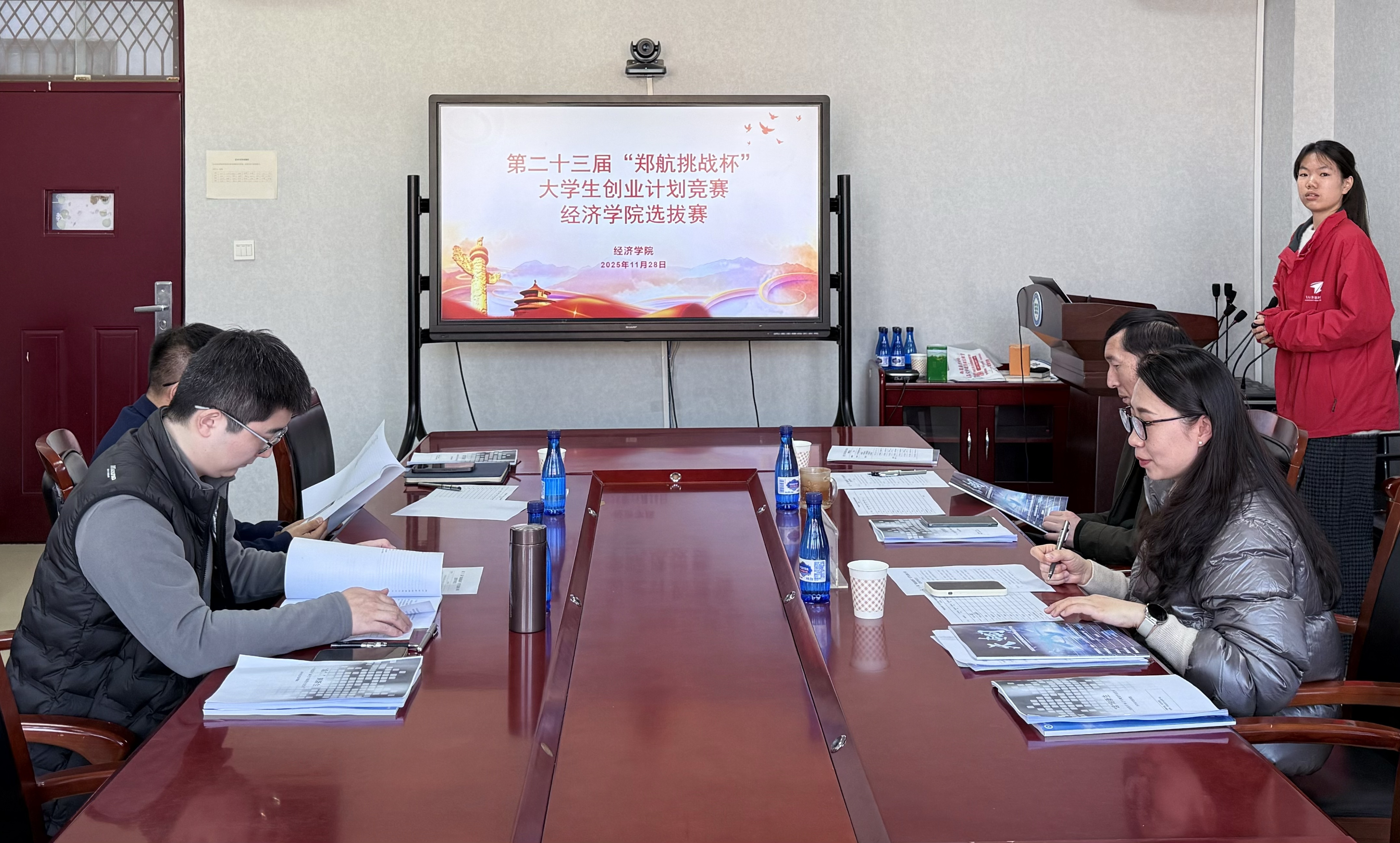 为进一步激活大学生创新潜能、锤炼实践能力、培育科创精神,11月28日上午,我院在05A507会议室顺利举办第二十三届“郑航挑战杯”大学生创业计划竞赛经济学院选拔赛。经济学院副院长马凌远、党委副书记拜婷、校团委社会实践部部长徐亚辉、经济学院教师尧瑶担任比赛评委,全体学生团队成员参加大赛。大赛由副院长马凌远主持。