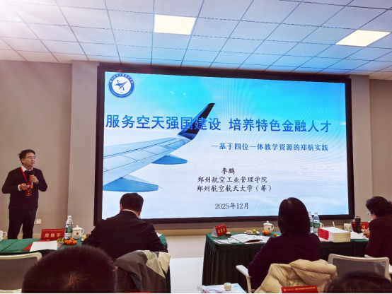 “金融学教学实践中的困境与对策”高校代表发言环节,李鹏教授以“服务空天强国建设 培养特色金融人才”为题,系统阐述了我校在“航空+金融+科技”融合视角下的特色金融学人才培养实践。他围绕学校、学院、专业与课程四位一体的教学资源体系,详细介绍了我校在这一领域的探索路径与建设成果。李鹏教授的发言内容与创新思路获得了与会专家及同行的广泛好评和积极反响。此外,多位专家结合各自教学实践,就金融学教学的创新与应用展开交流。他们从多元角度出发,分享了如何将重点教材的编写理念有机融入课程设置、课堂教学与学习评价之中,并围绕数字化手段、案例研讨、项目式学习等新型教学方式的运用,就如何增强学生参与、提高教学实效进行了充分讨论。