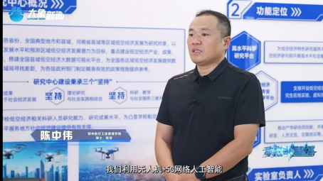 在采访中,陈中伟教授指出,低空经济是以低空空域资源为基础,以通用航空、无人机、低空物流、空中旅游等为核心内容的新兴产业形态,正逐步成为推动区域经济增长和科技创新的重要引擎;随着国家低空空域管理改革的持续推进,河南作为中部交通枢纽,具备发展低空经济的独特区位优势和产业基础;在无人机+救援中,我们利用无人机+5G网络人工智能,实时监测,根据不确定的状况发生,优化我们的救援路线,快速到达我们的险情点。