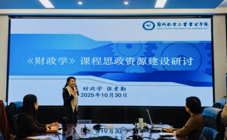 为深入贯彻落实新时代高校立德树人根本任务,扎实推进课程思政高质量建设,探索财政学课程专业教育与思政教育深度融合的有效路径与资源载体,我校经济学院财政学课程组于20251030日在05A407成功举办了“财政学课程思政资源建设研讨会”。会议由财政学课程负责人张素勤教授主讲,团队成员以及金融学教研室全体教师参加了此次活动。
