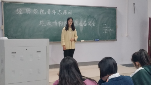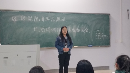 2019年3月14日,在05B102教室对报名地质博物馆讲解的志愿者进行了面试。先由志愿者对自己所选的部分进行简单的阐述,然后回答评委们提出的关于讲解中的各种问题,用沉着冷静应对各种突发事件,展现志愿者的志愿风采。