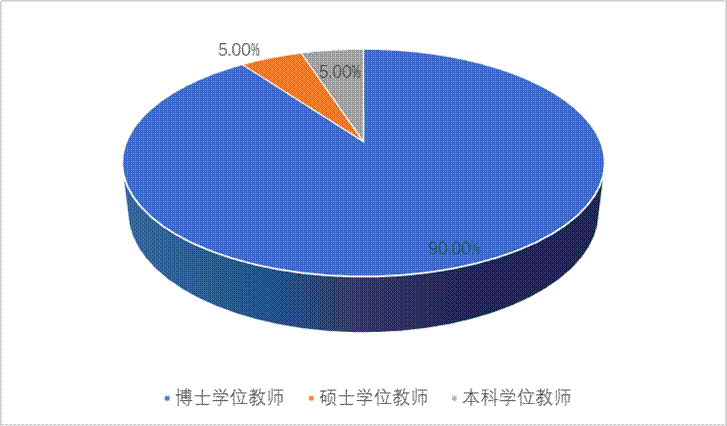 本学位授权点现有专任教师20人,其中教授4人,副教授8人,高级职称12人合计占比 60.00 %;从学位结构看,具有博士学位18人,博士占比90.00%;从年龄结构来看,45岁及以下15人,占比75.00%,46至59岁区间5人,占比25.00%。专任教师结构基本情况见表1。